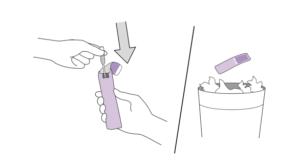 Lägg tillbaka katetern i förpackningen, den yttre förpackningen fungerar som en hygienisk och diskret avfallspåse. Släng som brännbart hushållsavfall