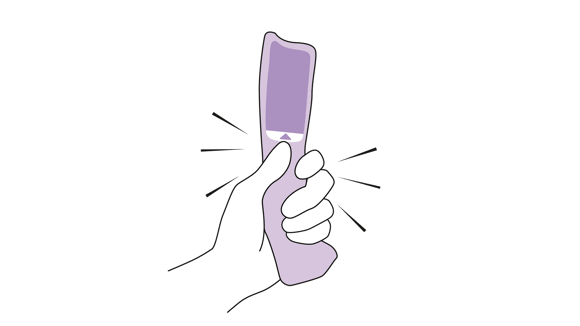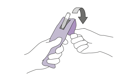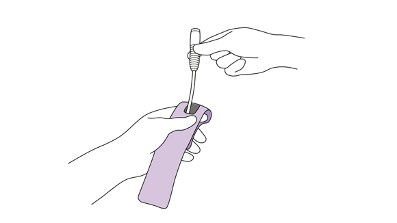 Kläm sönder behållaren med saltlösning för att aktivera katetern. Sedan är katetern klar att användas.