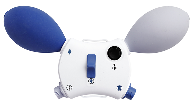 De två handpumparna gör det enkelt att pumpa och kontrollera uppblåsningen av ballongen och vattentillförseln .