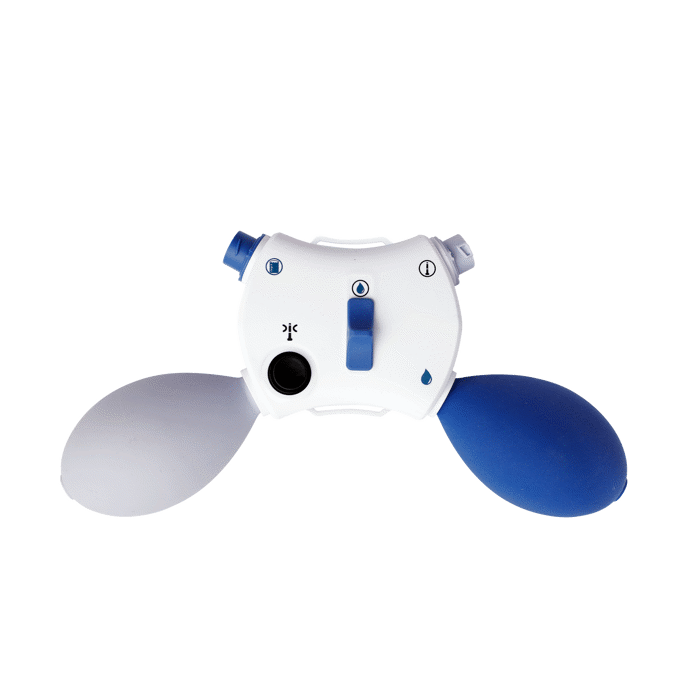 De två handpumparna gör det enkelt för dig att pumpa och kontrollera uppblåsningen av ballongen och vattentillförseln.