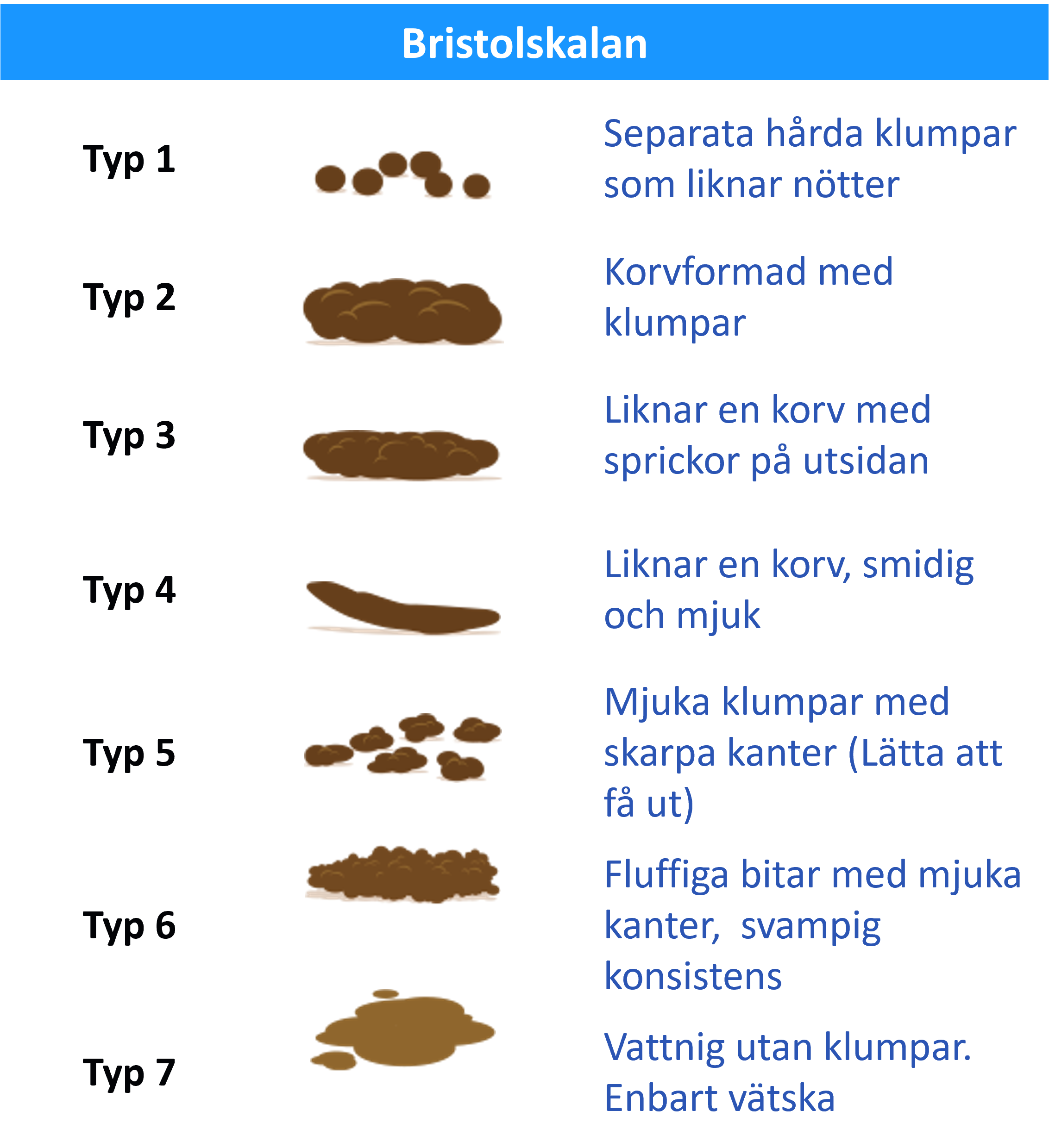 Typ 3-4 är lagom fast avföring som är lätt att få ut
