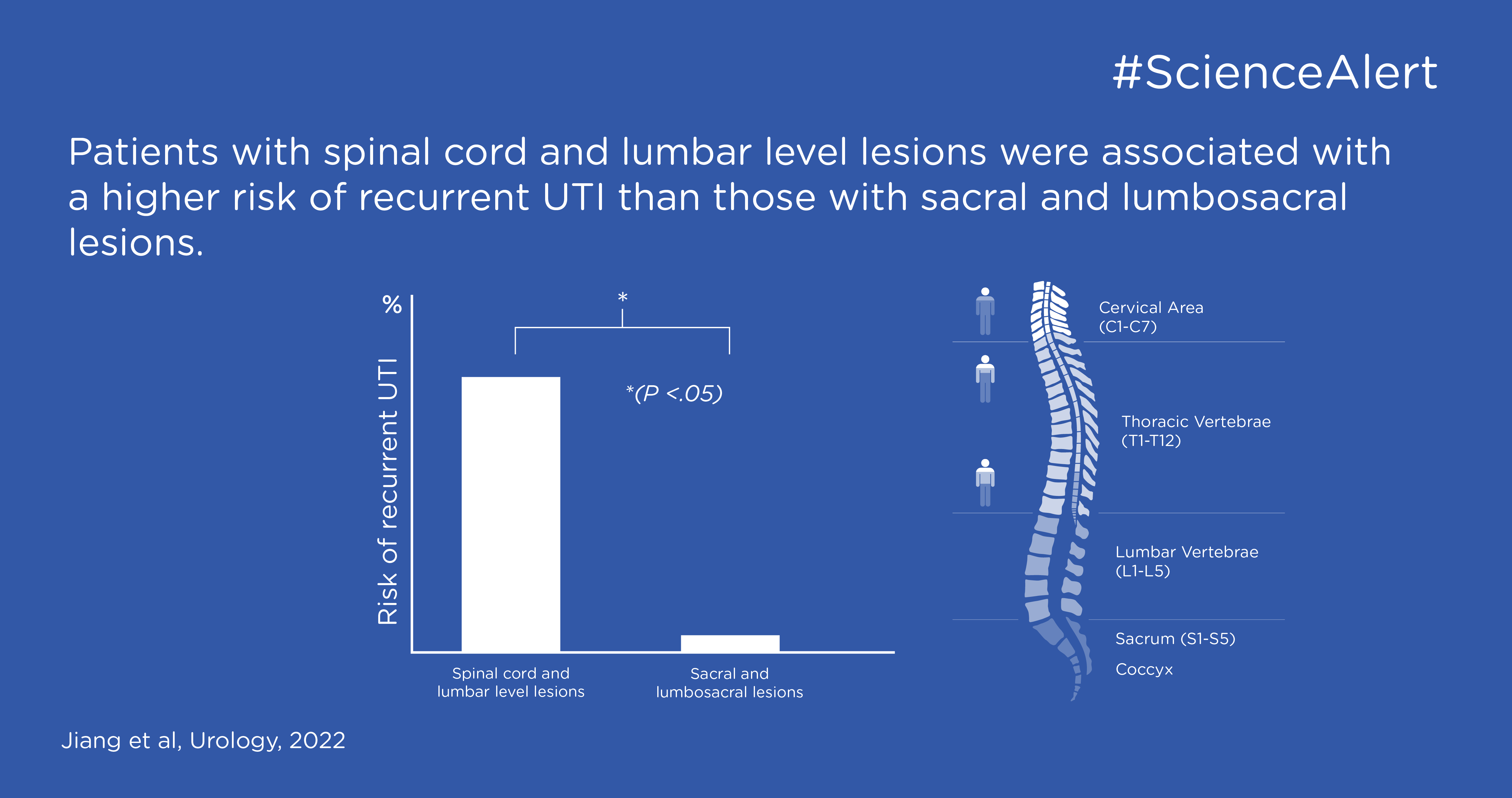 There are contradictory statements on how the level of injury affects the causes of UTIs. This study reported high-level spinal cord injury to be associated to a higher risk of recurrent UTIs. A higher spinal cord injury is more harmful to muscle function, which might lead to the possibility of VUR and lower bladder compliance.