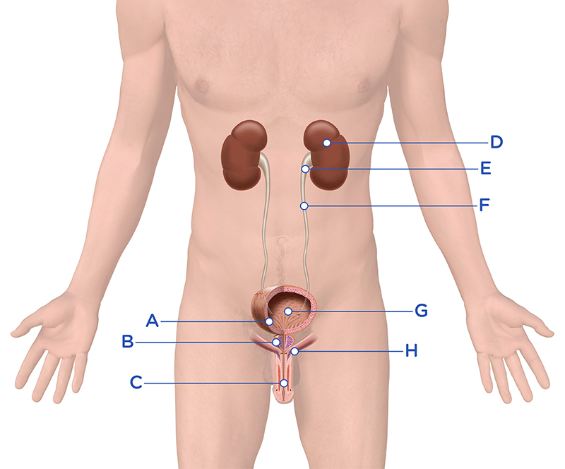 Det är viktigt att alla delar av urinvägarna samarbetar för att miktionen ska kunna fungera normalt. Urinvägarna består av njurar, urinledare, urinblåsa och urinrör. Det manliga urinröret har formen av ett s. Urinrörets längd är cirka 20–27 cm. Prostatan är placerad precis under urinblåsan. Urinröret passerar genom prostatan. Prostatan producerar det sekret som spermierna simmar i och den innehåller också prostataspecifikt antigen, PSA. Män har 2 slutmuskler (sfinktrar), den inre slutmuskeln (glatt muskulatur), som förhindrar att sperma tränger in i blåsan och den yttre slutmuskeln (tvärstrimmig muskel) som kan styras frivilligt för att tömning ska förhindras